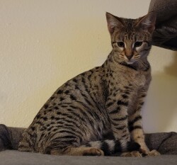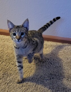 We were going to keep this pretty girl for our program but with so much going on we decided go sale her. She is raised in a family atmosphere with kids, cats and dogs. Would love to see her go to a cattery.