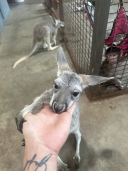 Bottle raised females. Approx 7.5 months old. Eating 3x day bottle and Happy Hopper kibble. These girls were used daily in guest interactions. Two available at $4500 each. Please do not email. Text or call only.