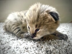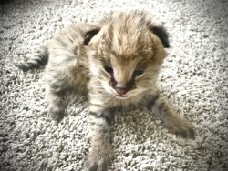 We have one male and one female serval kitten available. They were born on Halloween. They are bottle fed and highly socialized. We are USDA licensed.
