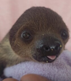 The baby sloth in the photo is super sweet, in perfect health and fully weaned.