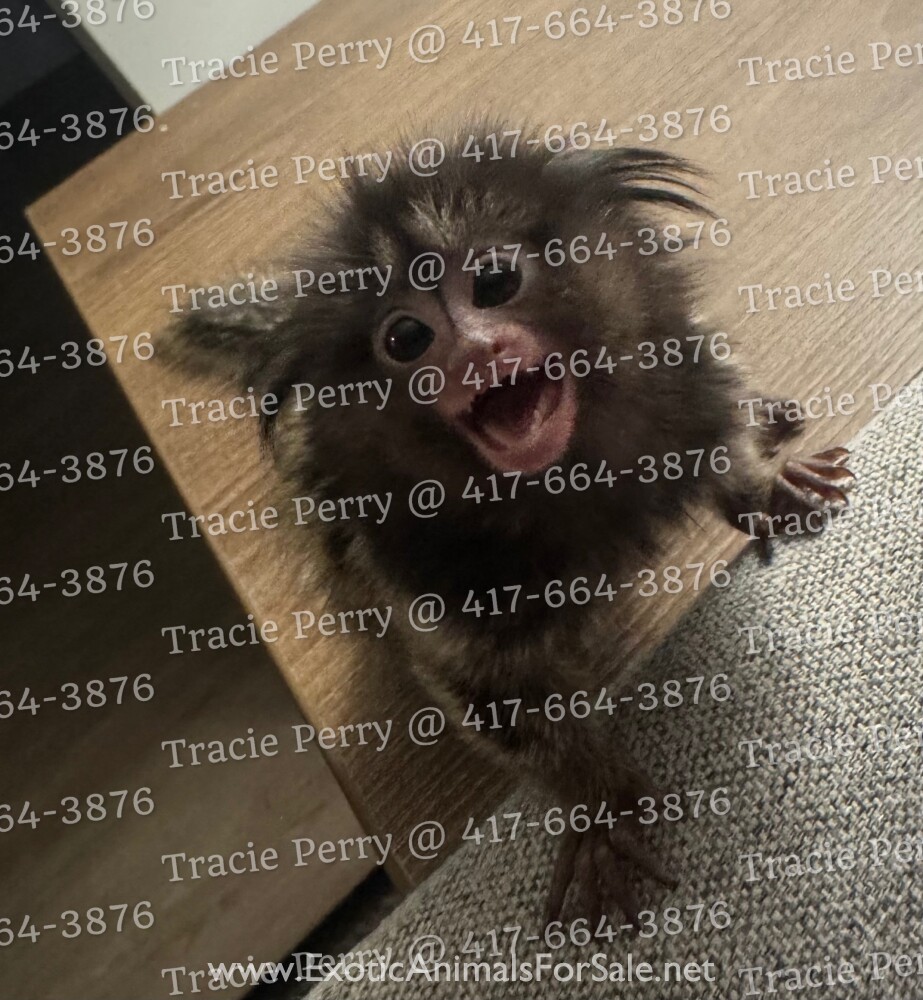 Adorable male marmoset looking for his forever home!! He comes with starter kit, Usda paperwork and health certificate. We will be there to walk you thru everything you need! Call Tracie @ 417-664-3876