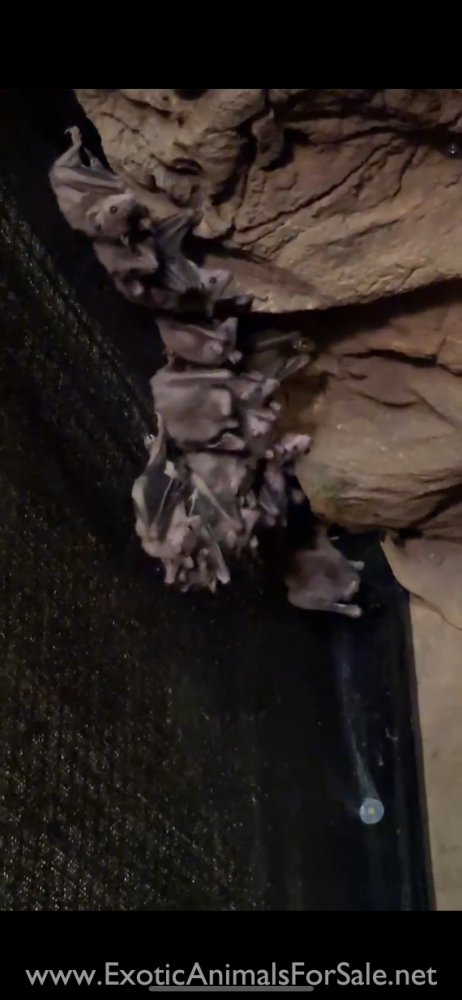 Healthy and prolific Egyptian fruit bat colony. Several babies present now. up in Florida. Would consider selling the rock walls with them from universal rock, for an extra cost. Please text: (727) 358-9342